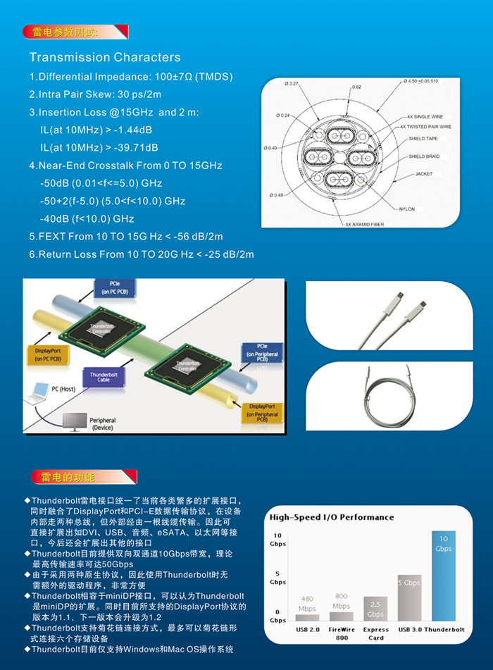 Thunderbolt雷电高速接口的测试参数: