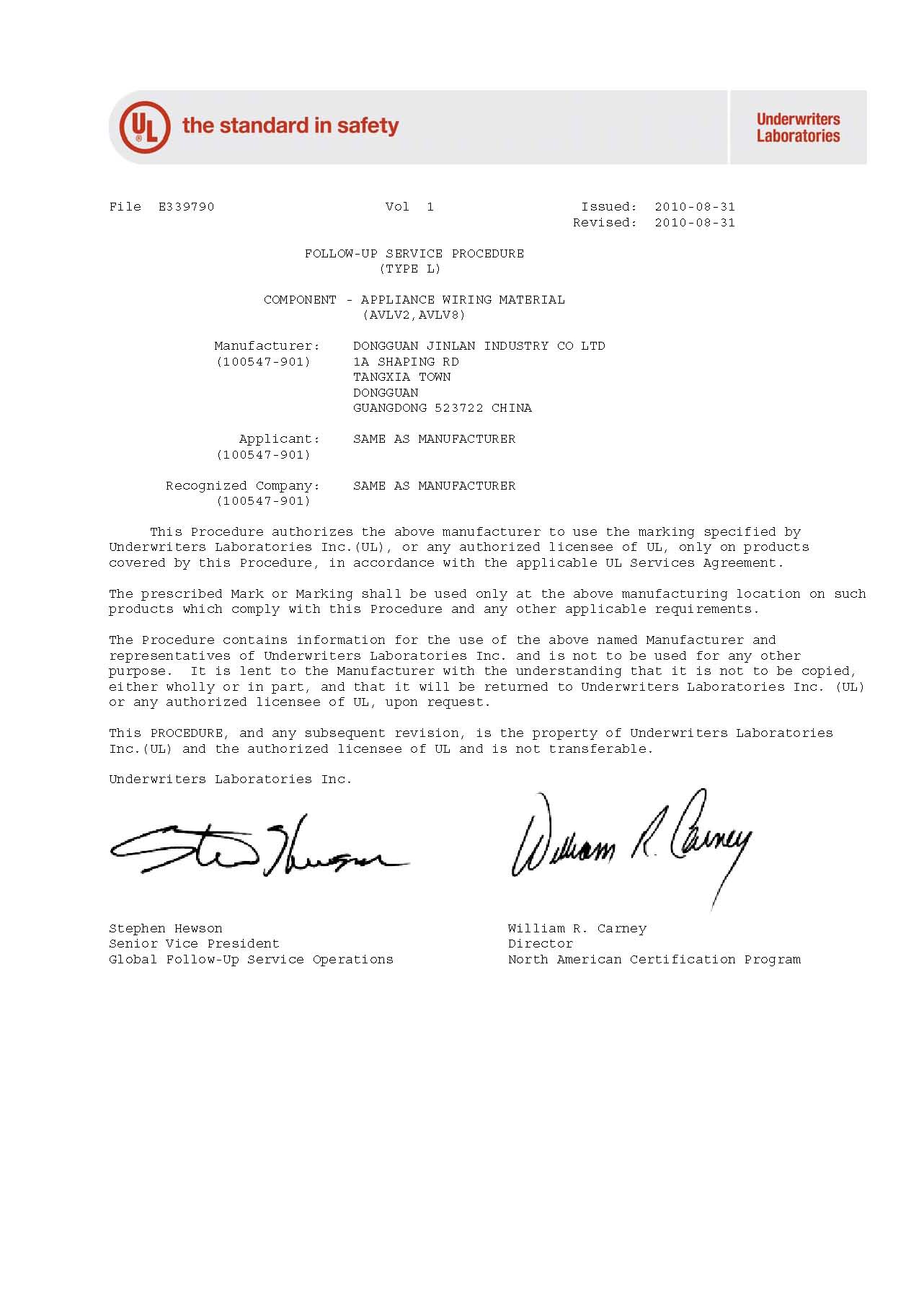 jin Lan, the company has always been to protect the quality of the premise to ensure that each batch of products are the best quality, the company constantly improve the certification system for this, through the ISO9001: 2000, ISO1400 quality certification and the certification requirements by Underwriters Laboratories, UL No. : E33979